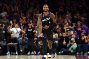体育资讯4月18日讯 NBA附加赛,太阳111-96击败勇士,杰伦·格林打出生涯代表作,8个三分平附加赛球员单场历史纪录。